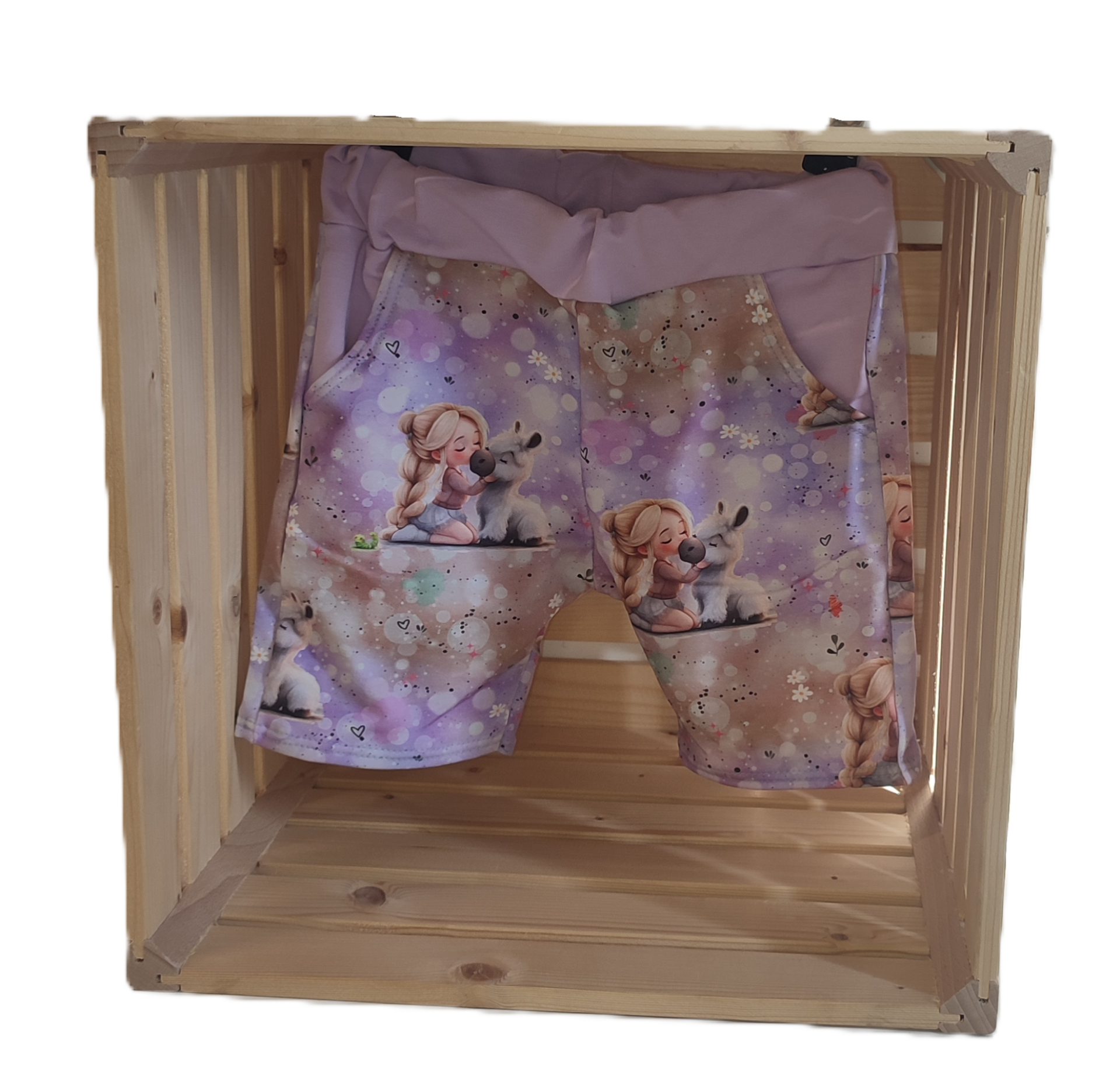 kurze Hose -Mädchen mit Esel